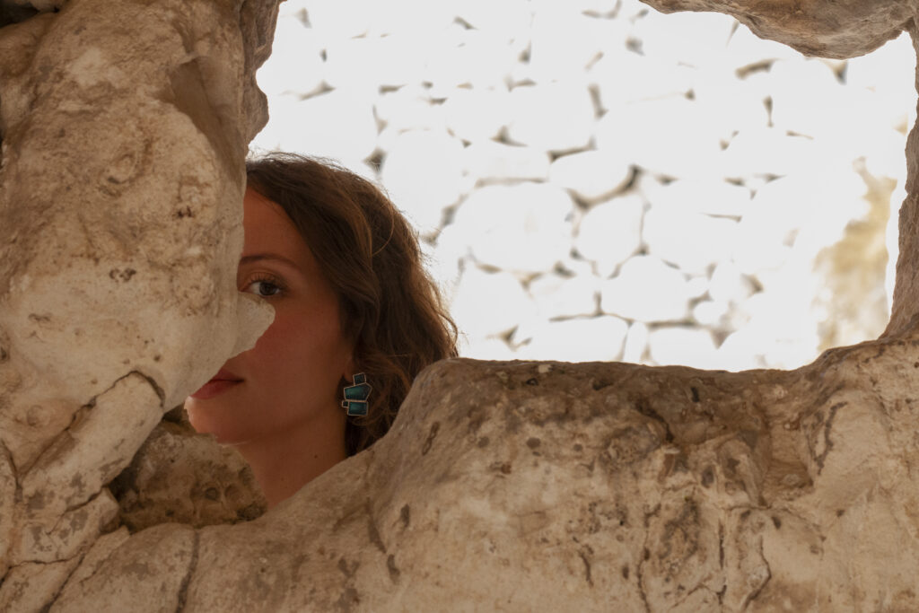 Durante l’adolescenza scopro il piacere di indossare gli ornamenti ed inizio a realizzarne alcuni utilizzando naturalia e piccoli tesori, raccolti durante i pomeriggi di estate sugli scogli cocenti della mia isola.