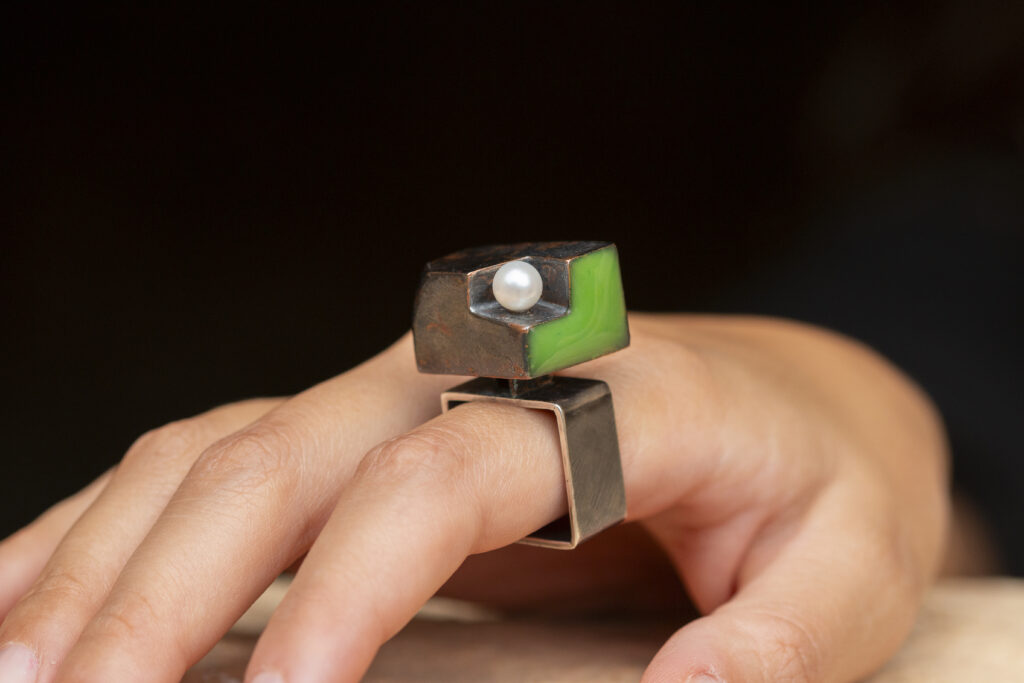 Appassionandomi molto al mondo dell’oreficeria frequento ancora un corso sulla lavorazione della cera persa, tenuto dalle orafe Stenia Scarselli e Lavinia Rossetti grazie alle quali scopro il gioiello contemporaneo.